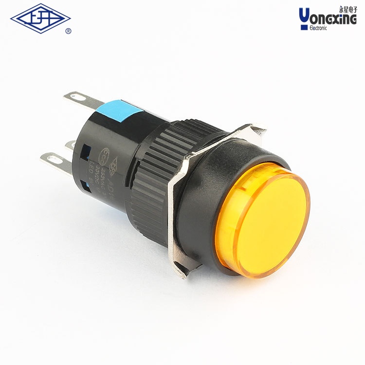 ?AD16雙極自鎖型?(上海永星):長(zhǎng)方形按鈕,含雙極觸點(diǎn)和帶燈配置。